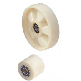• KOŁA NYLONOWE BIAŁE - NTN - Koła przednie poliamidowe, tylne małe rolki podwójne poliamidowe