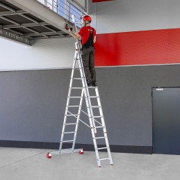 • DRABINA TRZYELEMENTOWA PROFESJONALNA PREMIUM • Ilość szczebli: 15+15+15• Wysokość całkowita: 11,10 m• Wysokość po złożeniu: 4,39 m• Wielofunkcyjna drabina aluminiowa do zastosowań wszechstronnych i profesjonalnych• Składająca się z trzech elementów z antypoślizgowymi w całości ryflowanymi szczeblami o wymiarze 30mm x 25mm• Bardzo wytrzymała drabina...