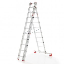 • DRABINA TRZYELEMENTOWA SERIA AK• Ilość szczebli: 9+9+9• Wysokość całkowita: 5,60 m• Wysokość po złożeniu: 2,80 m• Drabinę można stosować jako drabinę przystawną lub rozstawną• Wygodne szczeble o wymiarach 30×30 mm• Podłużnice drabiny wykonane zostały z wytrzymałych, zamkniętych profili aluminiowych o przekroju 60 x25 mm, dodatkowo boki wzmocnione 1,2 i...