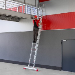• DRABINA TRZYELEMENTOWA PROFESJONALNA PREMIUM • Ilość szczebli: 15+15+15• Wysokość całkowita: 11,10 m• Wysokość po złożeniu: 4,39 m• Wielofunkcyjna drabina aluminiowa do zastosowań wszechstronnych i profesjonalnych• Składająca się z trzech elementów z antypoślizgowymi w całości ryflowanymi szczeblami o wymiarze 30mm x 25mm• Bardzo wytrzymała drabina...
